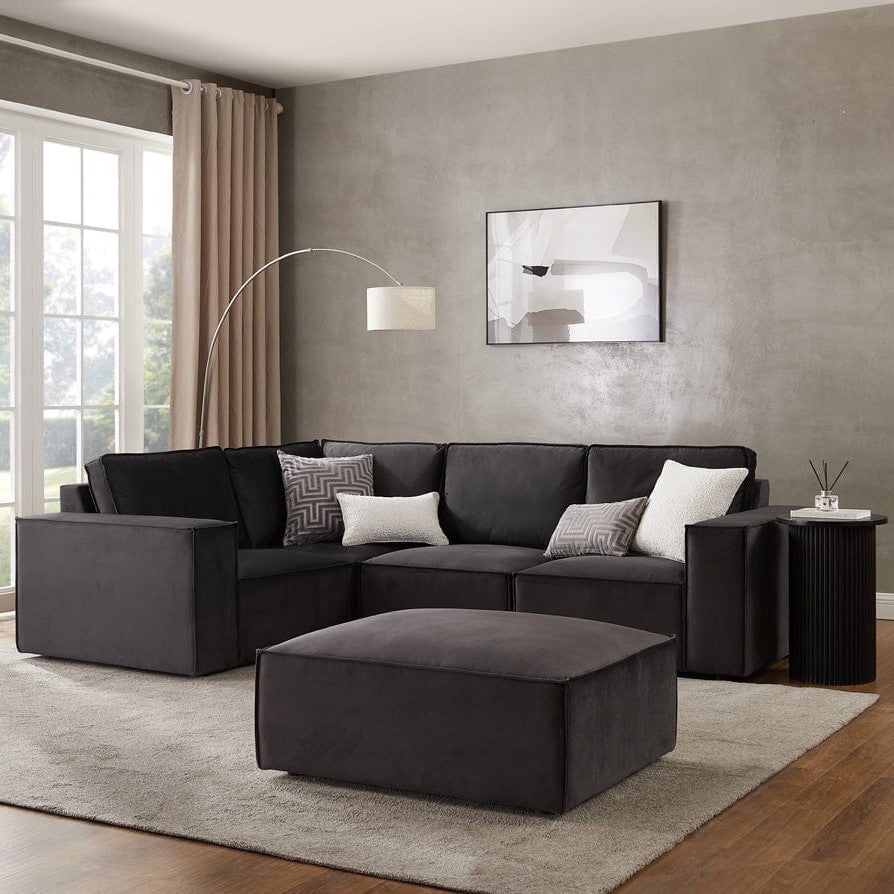 The perfect fit for any modern home interior, take a seat on the Brooklyn Modular Small Left L-Shape Sofa in Ink Velvet.