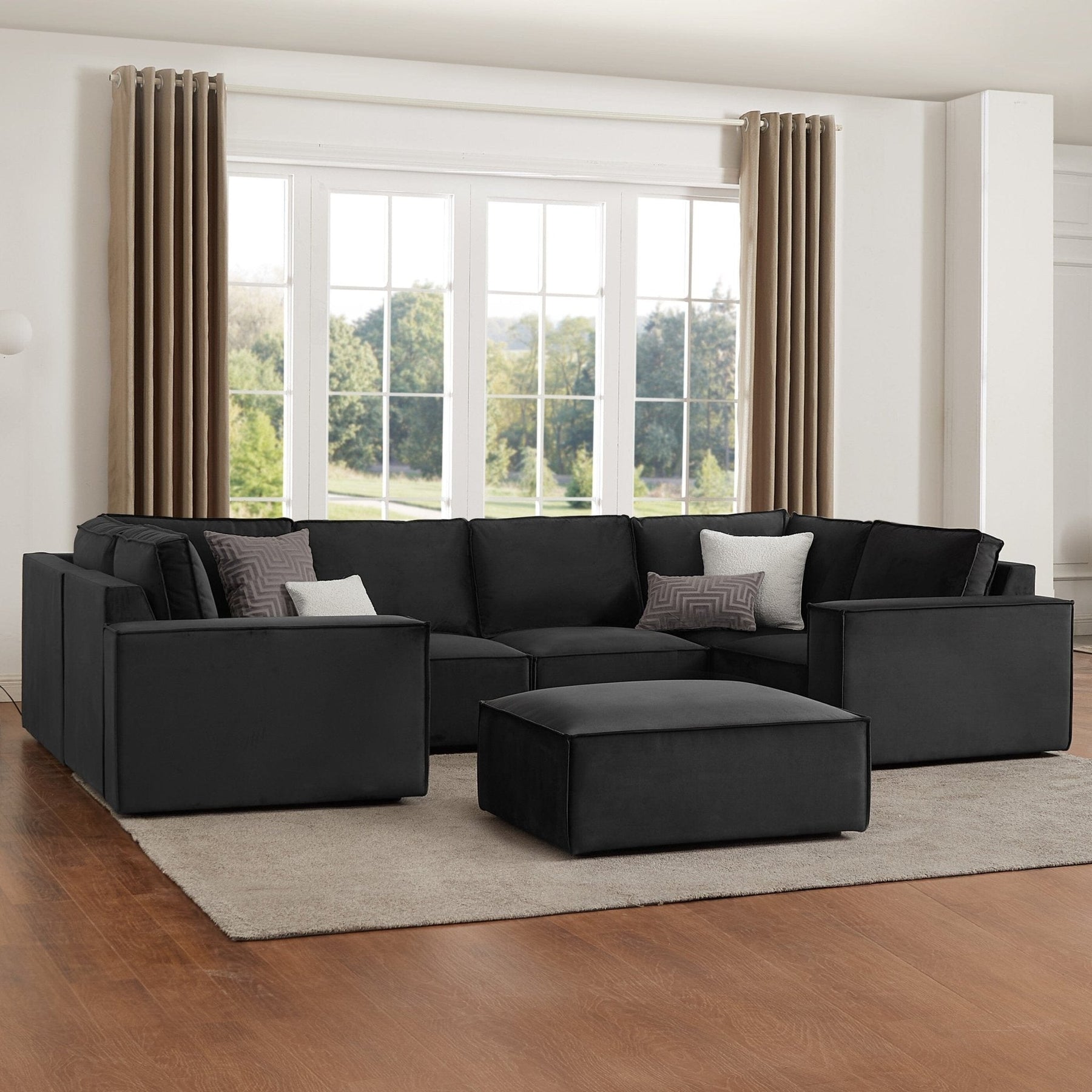 The ultimate in exceptional comfort and contemporary style, say hello to the Brooklyn U-Shape Sofa in Ink velvet.