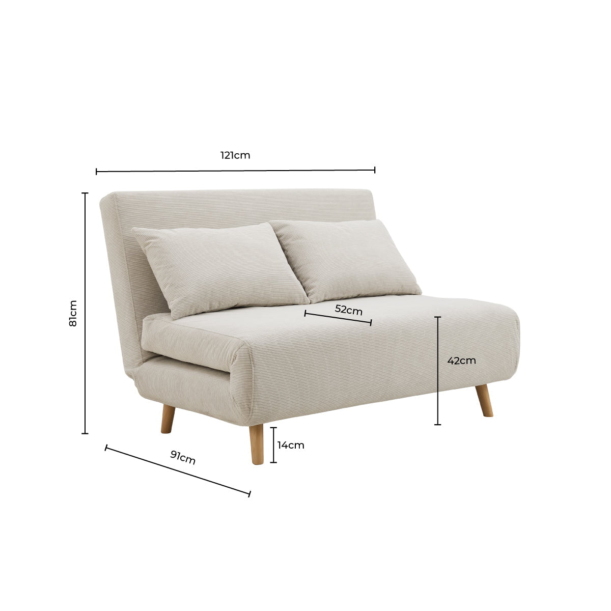 Seattle Double Click Clack Sofa Bed - Corduroy - Pebble